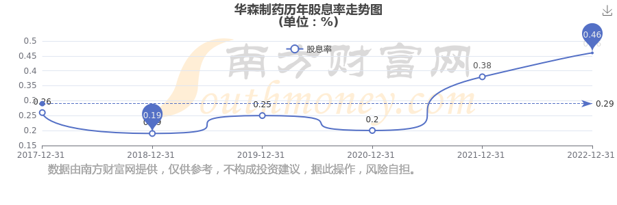 华森制药历年股息率走势如下图:
