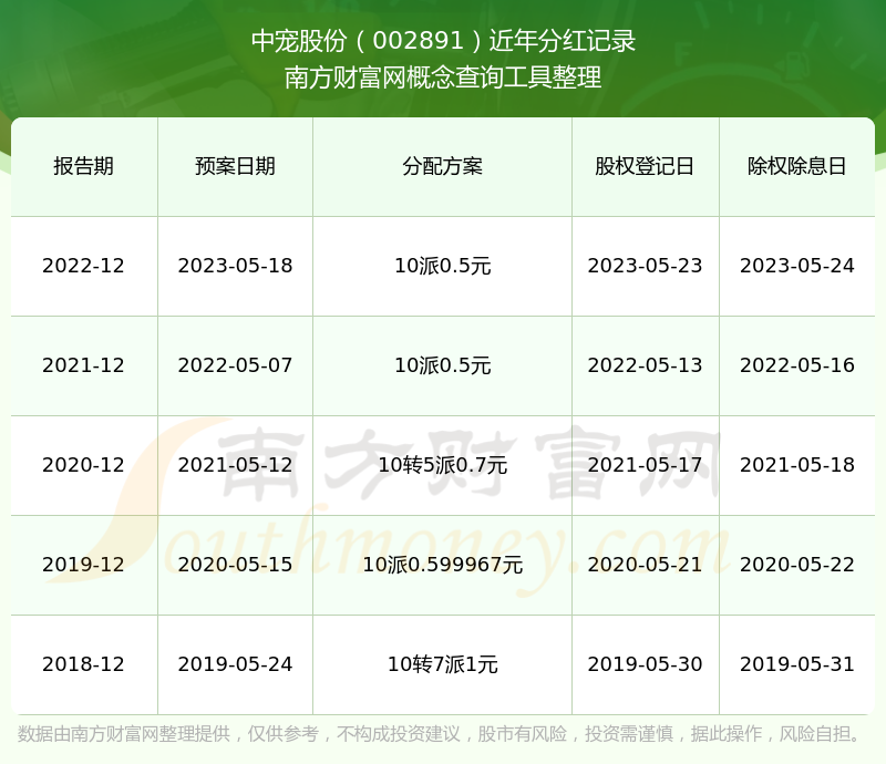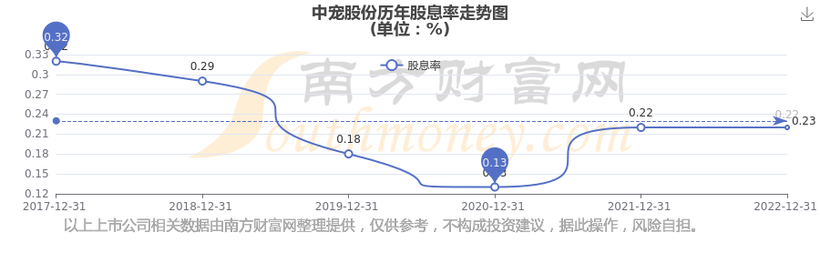 中宠股份最新一次公布的分红方案:10派0.5元。