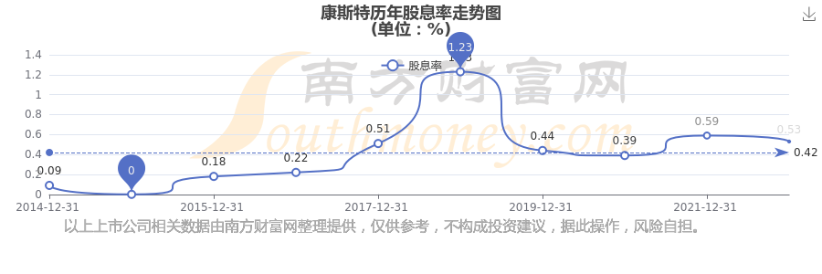 康斯特历年股息率走势如下图: