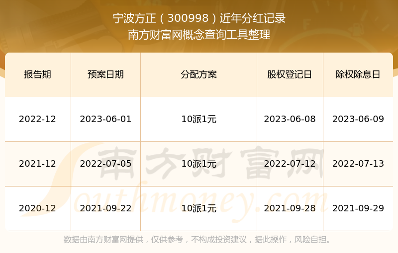 宁波方正最新一次公布的分红方案:10派1元。