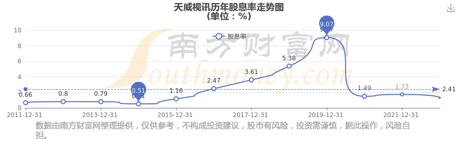 天威视讯历年股息率走势如下图: