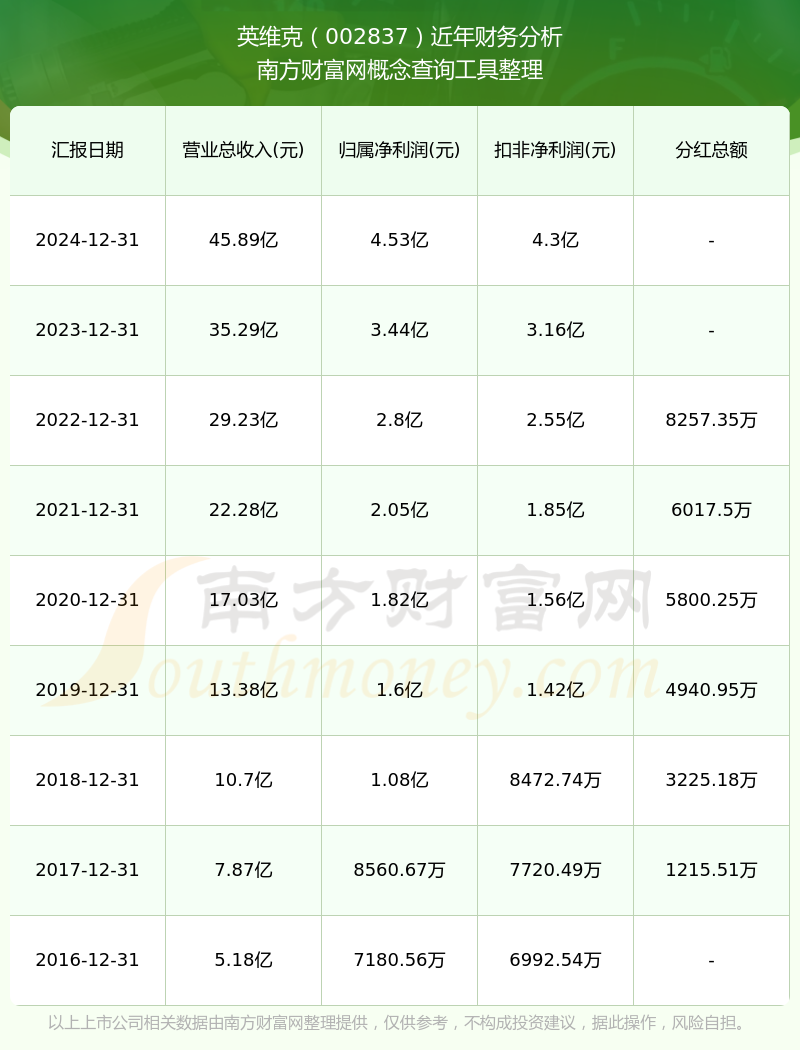 英维克财务分析如下图: