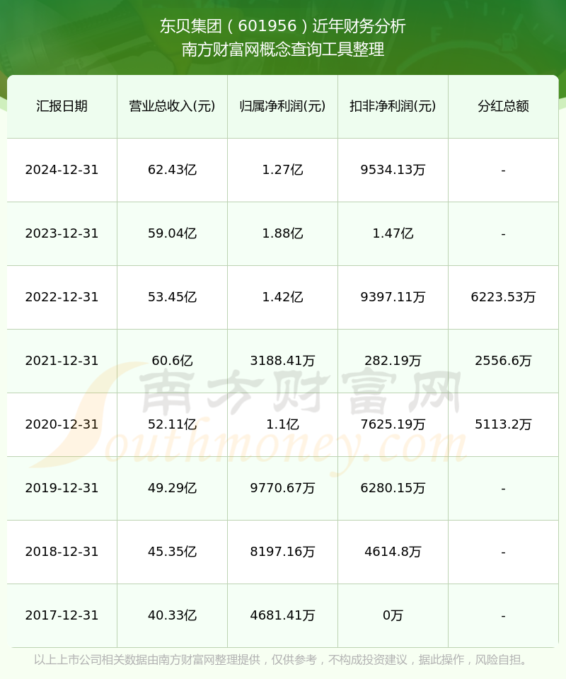 2024年报显示,东贝集团实现营收62.43亿,同比增长5.74%;净利润1.27亿,同比增长-32.51%;毛利率12.31%。