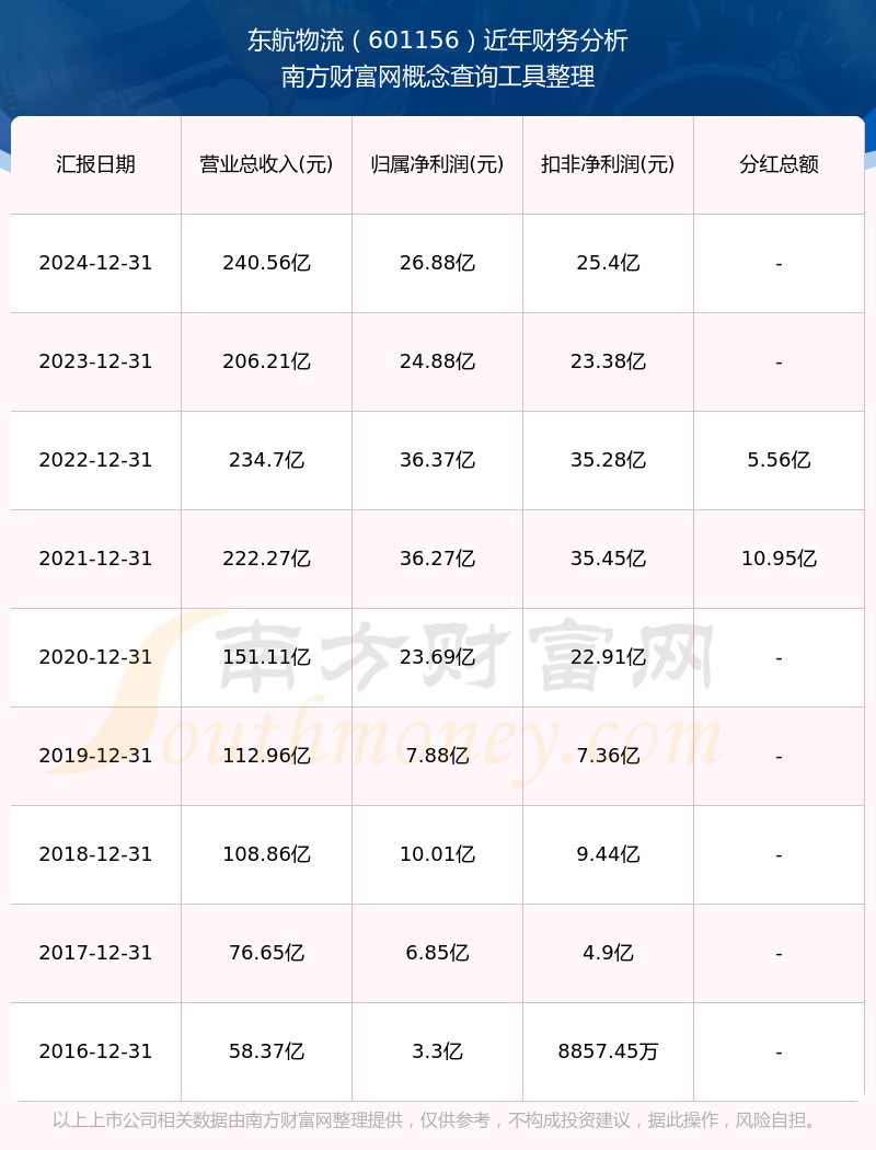 2024年东航物流总营收240.56亿,同比增长16.66%;净利润26.88亿,同比增长8.01%;销售毛利率19.43%。