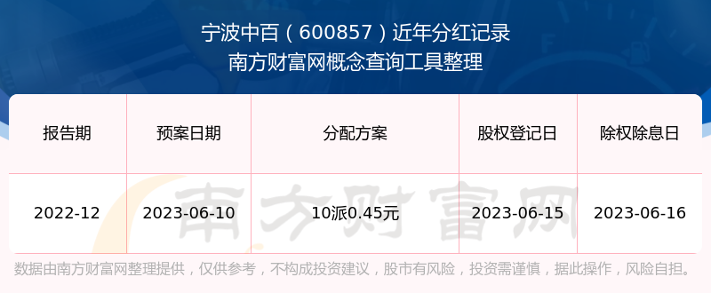 宁波中百最新一次公布的分红方案:10派0.45元。