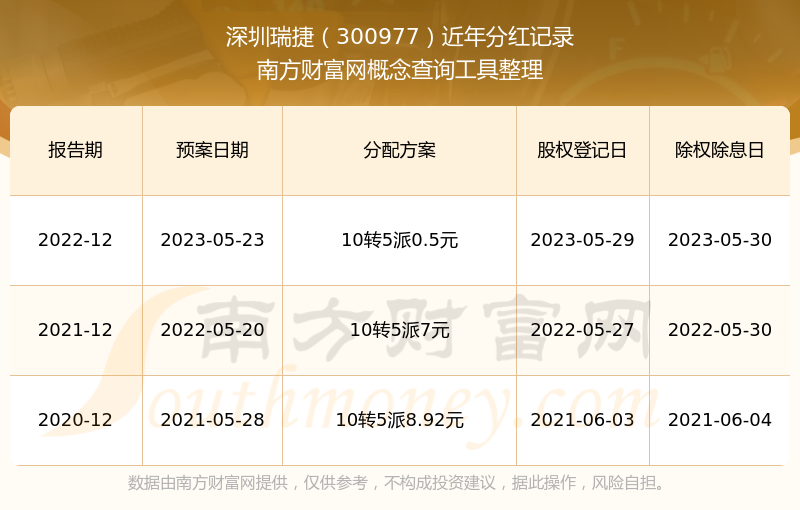 深圳瑞捷最新一次公布的分红方案为10转5派0.5元。本次权益分派股权登记日为2023年5月29日,除权除息日为2023年5月30日,派息日为2023年5月30日。