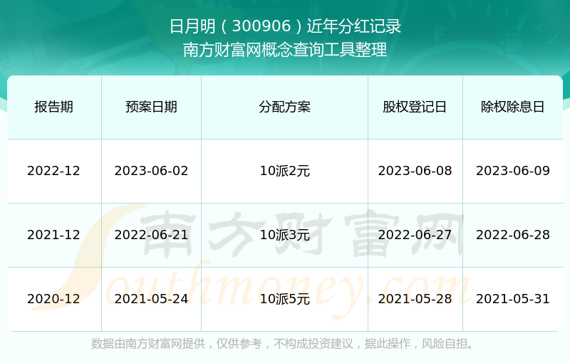 日月明最新一次公布的分红方案:10派2元。