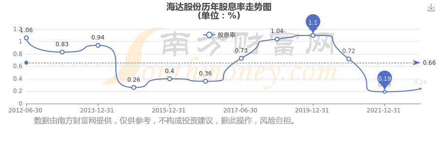 海达股份历年股息率走势如下图: