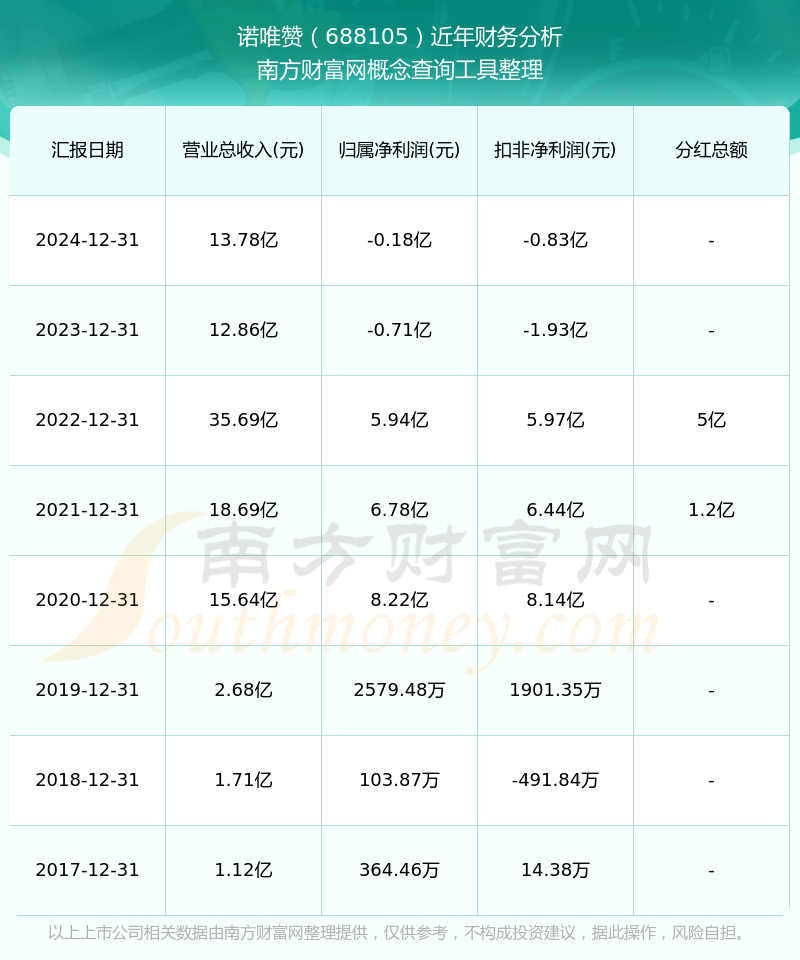 诺唯赞2024年总营收13.78亿,同比增长7.15%;净利润-1809.38万,同比增长74.5%;销售毛利率69.93%。