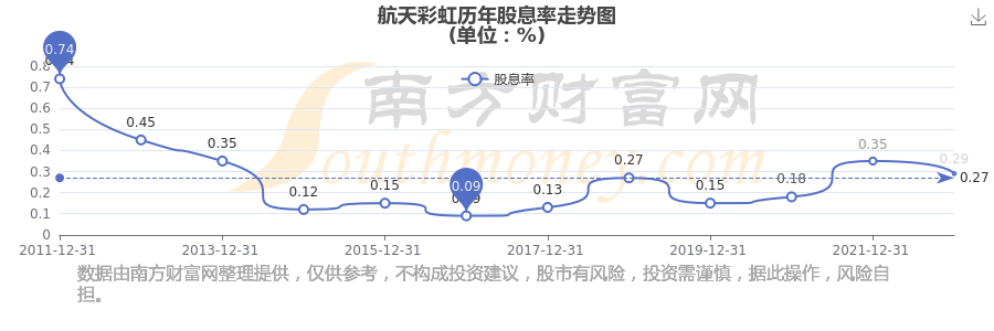 航天彩虹最新一次公布的分红方案:10派0.6元。