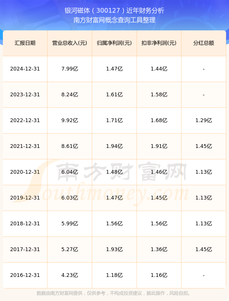 银河磁体财务分析如下图: