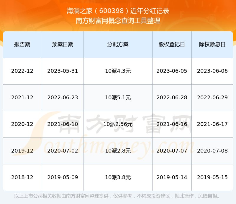 海澜之家600398分红时间: