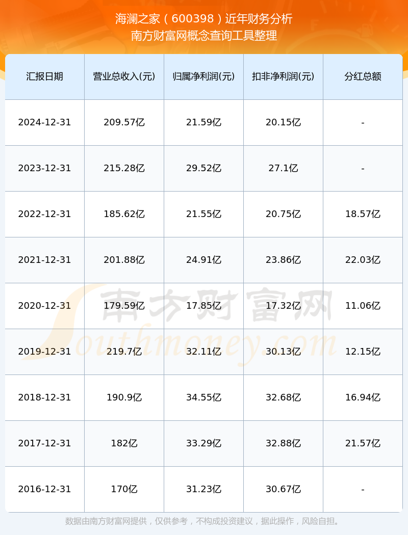 海澜之家公司2024年实现营收209.57亿元,净利润21.59亿元,毛利率44.52%。