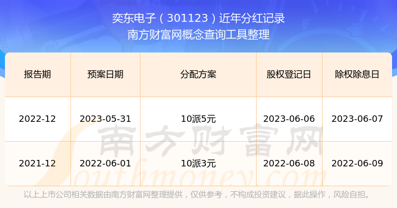 奕东电子历年分红派息情况如下表所示: