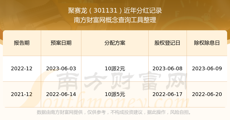 聚赛龙历年分红派息情况如下表所示: