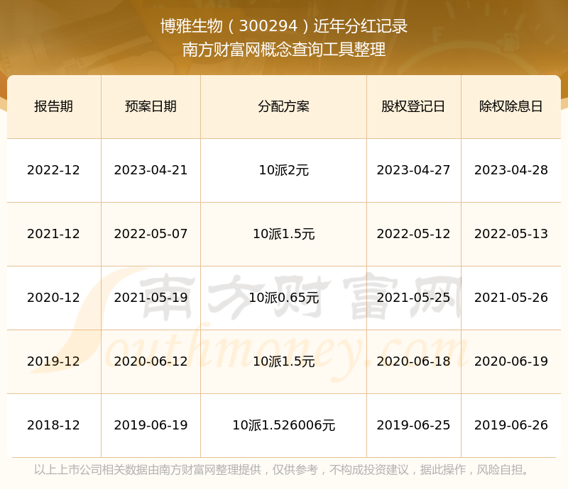 博雅生物最新一次公布的分红方案:10派2元。