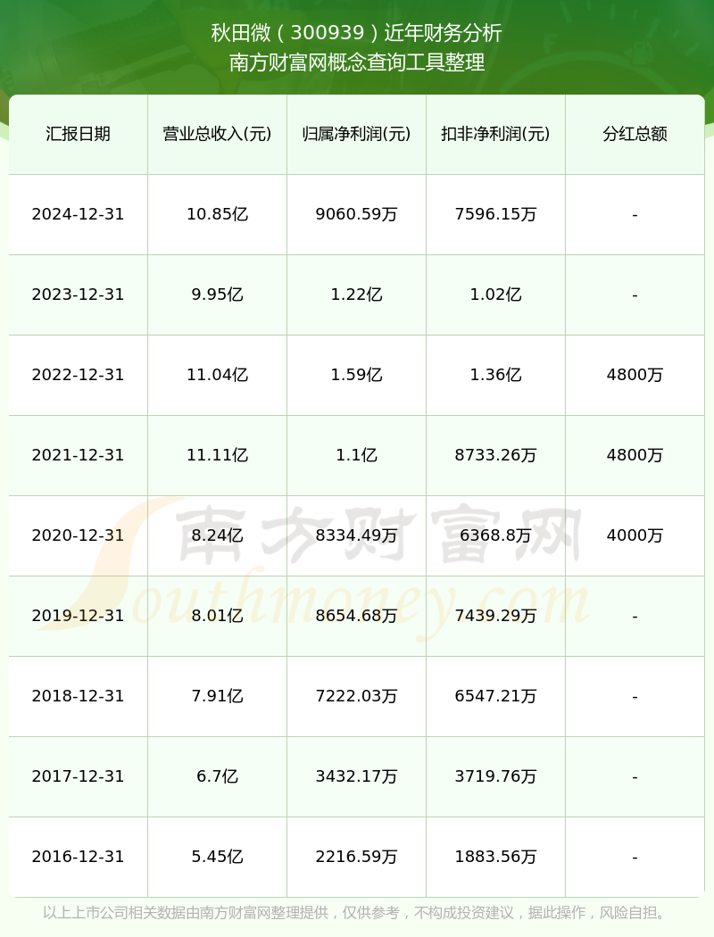 秋田微公司2024年实现营收10.85亿元,净利润9060.59万元,毛利率24.75%。