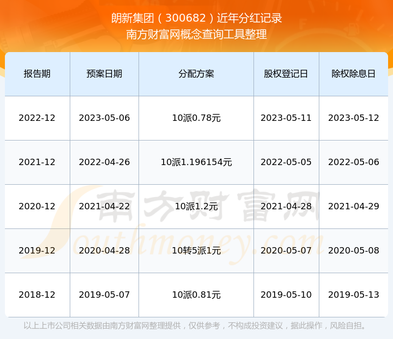 朗新集团最新一次公布的分红方案为10派0.78元。本次权益分派股权登记日为2023年5月11日,除权除息日为2023年5月12日,派息日为2023年5月12日。
