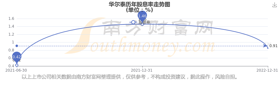 华尔泰最新一次公布的分红方案为10派1元。本次权益分派股权登记日为2023年4月27日,除权除息日为2023年4月28日,派息日为2023年4月28日。