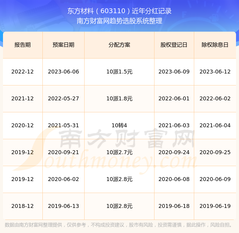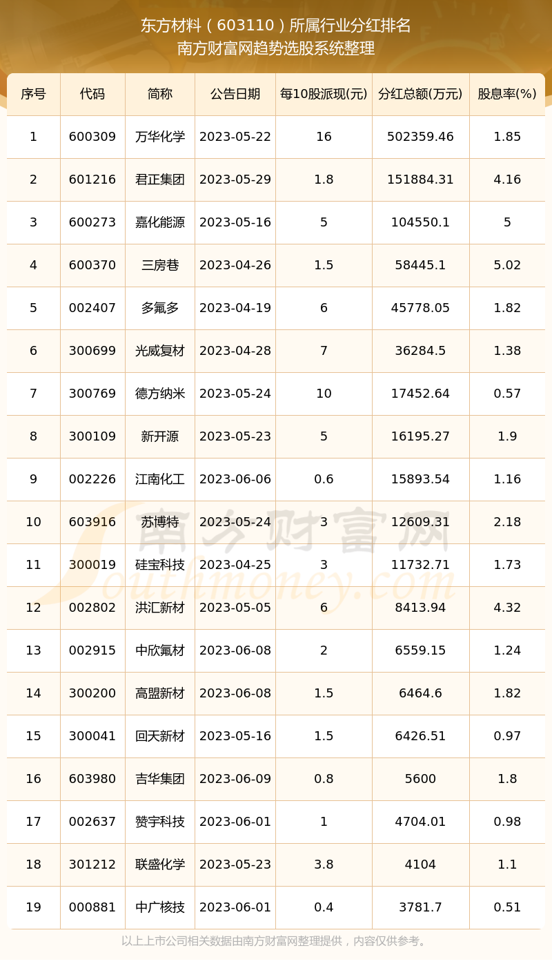 二、东方材料603110行业分红排名