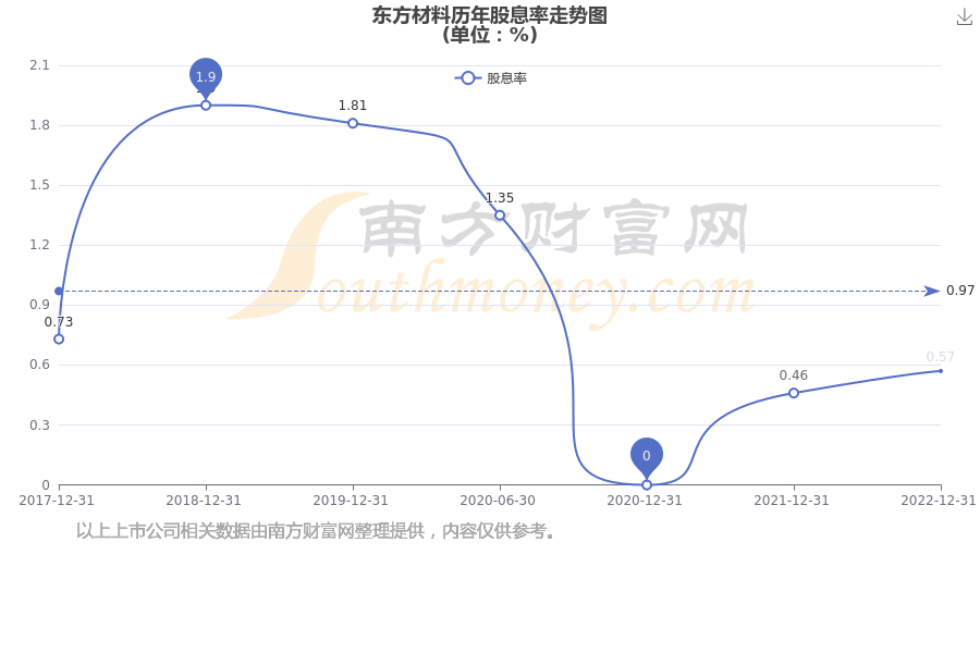 近年东方材料年度股息率走势如下图: