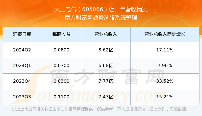 财报显示,2024年第二季度天正电气营收8.62亿元,同比增长17.11%,净利润4534.53万元,同比增长-10.36%。
