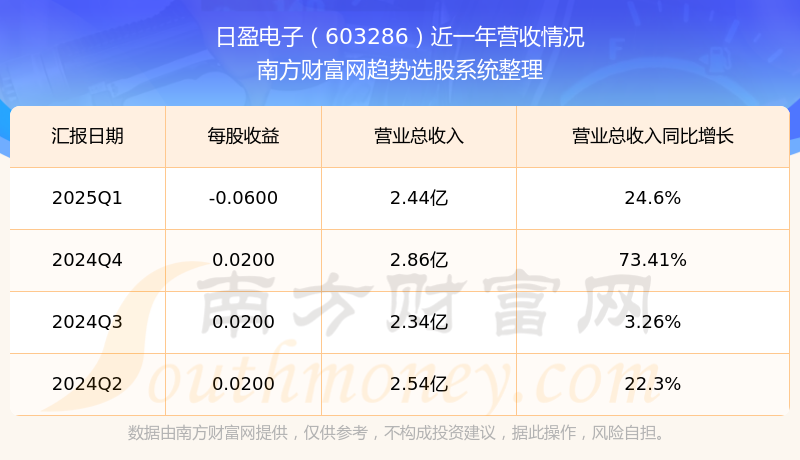 在2025年第一季度,日盈电子的业绩表现,主营业务收入达到2.44亿元,实现了24.6%的同比增长率。同时,公司归母净利润录得-740.4万元,同比增长-229.87%。