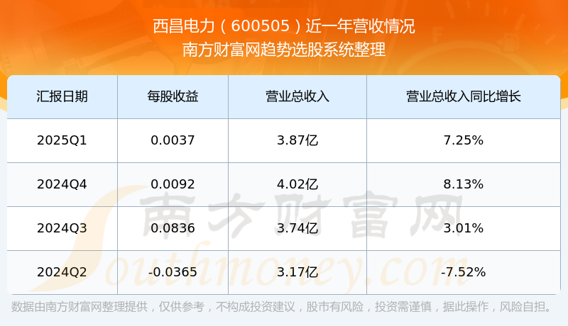 西昌电力股票近一年营收情况如下表: