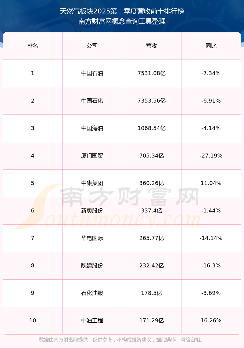 按照南方财富网概念查询工具统计,该股所属板块为天然气板块,该板块共有151只股票,百川能源2025第一季度营收在该板块中排名为第51名,该板块2025第一季度营收排名前十的股票如下表: