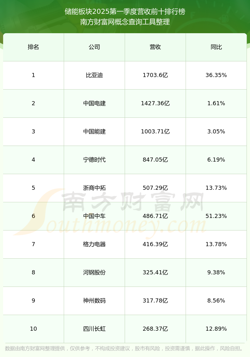按照南方财富网概念查询工具统计,该股所属板块为储能板块,该板块共有459只股票,动力源2025第一季度营收在该板块中排名为第420名,该板块2025第一季度营收排名前十的股票如下表: