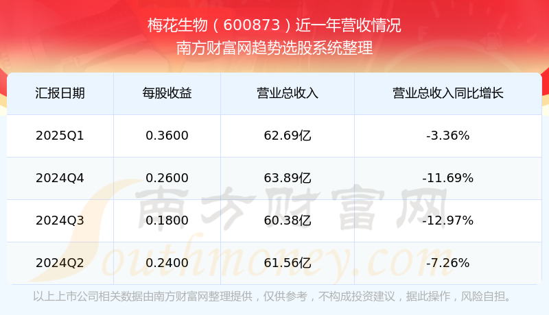梅花生物股票近一年营收情况如下表: