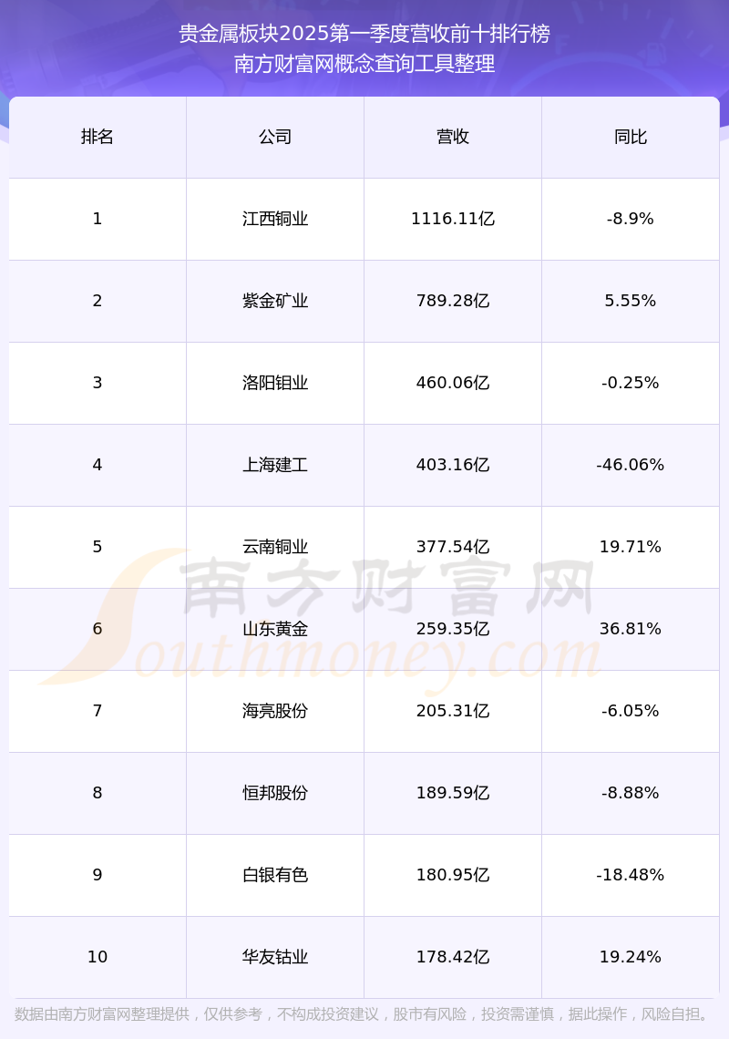 按照南方财富网概念查询工具统计,该股所属板块为贵金属板块,该板块共有64只股票,山东黄金2025第一季度营收在该板块中排名为第6名,该板块2025第一季度营收排名前十的股票如下表: