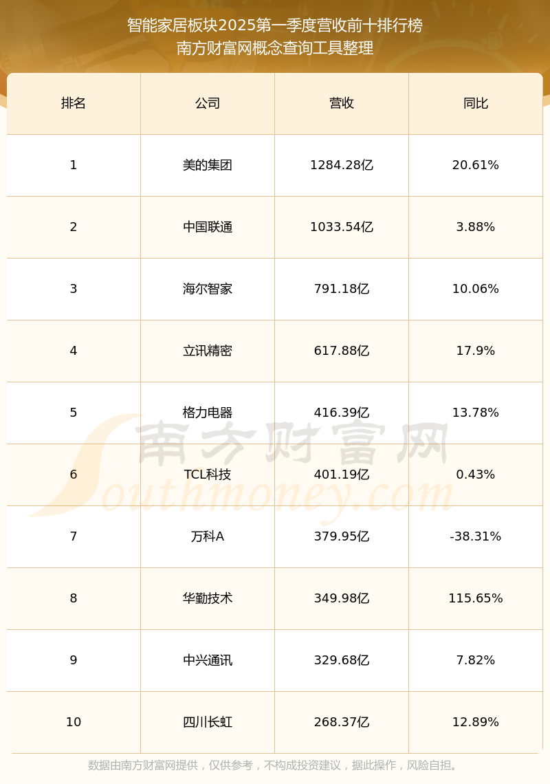 按照南方财富网概念查询工具统计,该股所属板块为智能家居板块,该板块共有298只股票,惠而浦2025第一季度营收在该板块中排名为第97名,该板块2025第一季度营收排名前十的股票如下表: