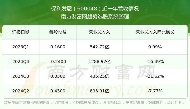 保利发展股票近一年营收情况如下表: