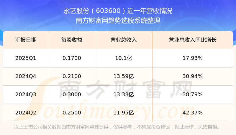 永艺股份股票近一年营收情况如下表: