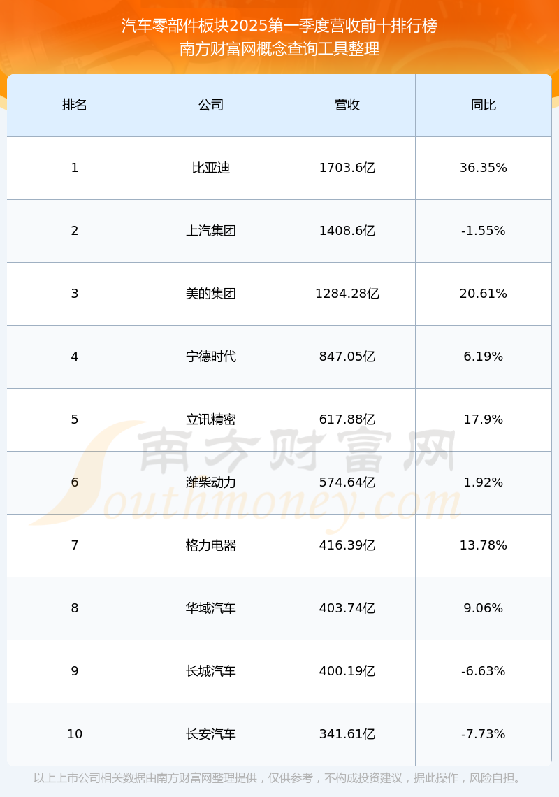 按照南方财富网概念查询工具统计,该股所属板块为汽车零部件板块,该板块共有562只股票,继峰股份2025第一季度营收在该板块中排名为第44名,该板块2025第一季度营收排名前十的股票如下表: