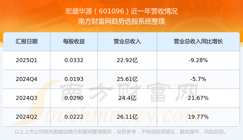 宏盛华源股票近一年营收情况如下表: