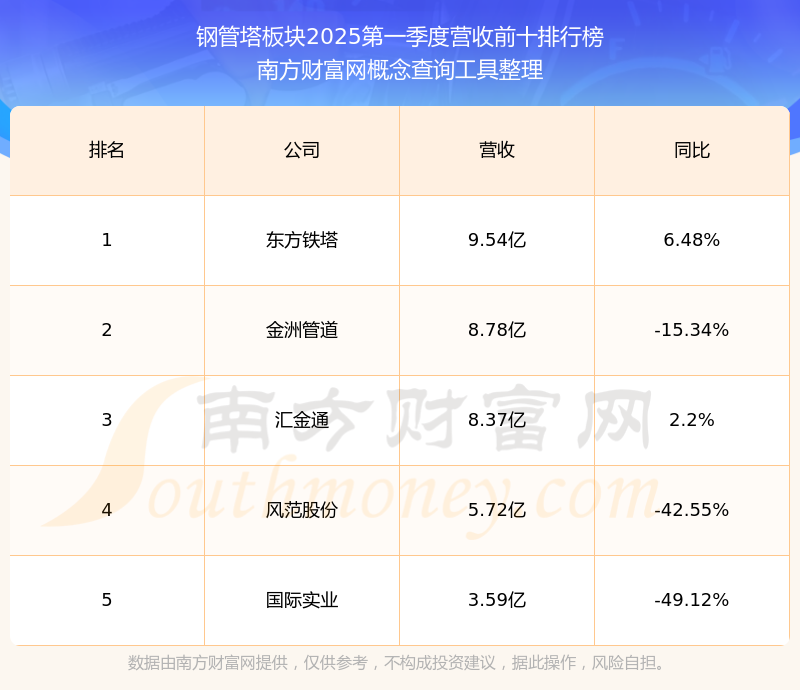 按照南方财富网概念查询工具统计,该股所属板块为钢管塔板块,该板块共有5只股票,宏盛华源2025第一季度营收在该板块中排名为第5名,该板块2025第一季度营收排名前十的股票如下表: