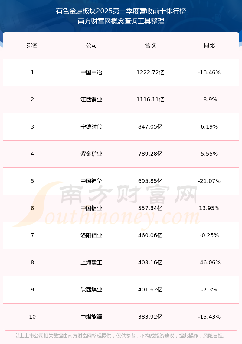 按照南方财富网概念查询工具统计,该股所属板块为有色金属板块,该板块共有289只股票,鹏欣资源2025第一季度营收在该板块中排名为第133名,该板块2025第一季度营收排名前十的股票如下表: