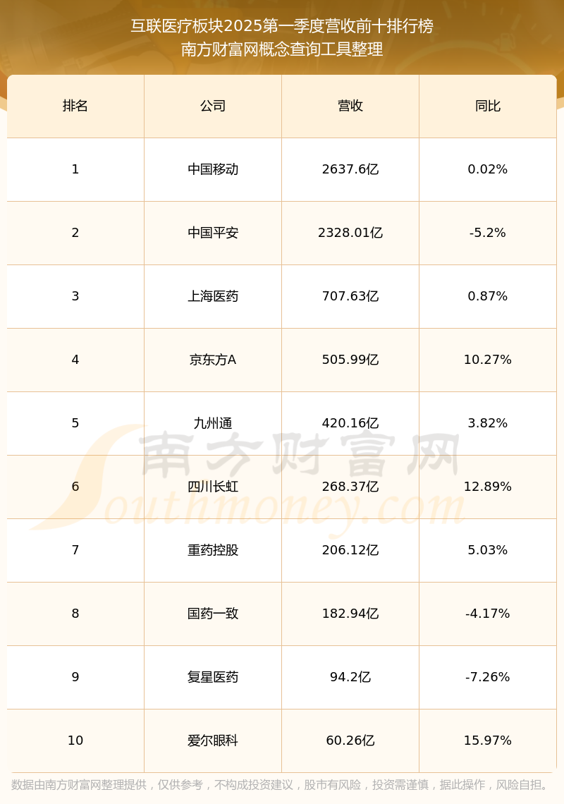 按照南方财富网概念查询工具统计,该股所属板块为互联医疗板块,该板块共有127只股票,益丰药房2025第一季度营收在该板块中排名为第11名,该板块2025第一季度营收排名前十的股票如下表: