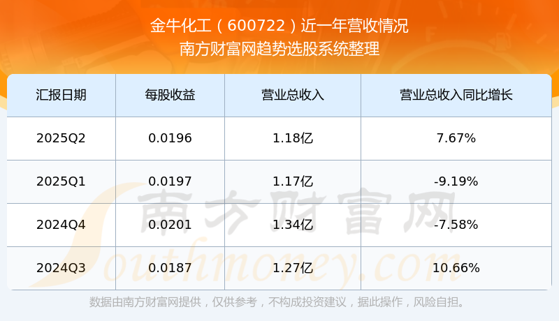 金牛化工2025年第二季度显示,公司主营收入1.18亿元,同比7.67%;归母净利润1329.76万元,同比-2.73%;扣非净利润1146.05万元,同比14.58%。