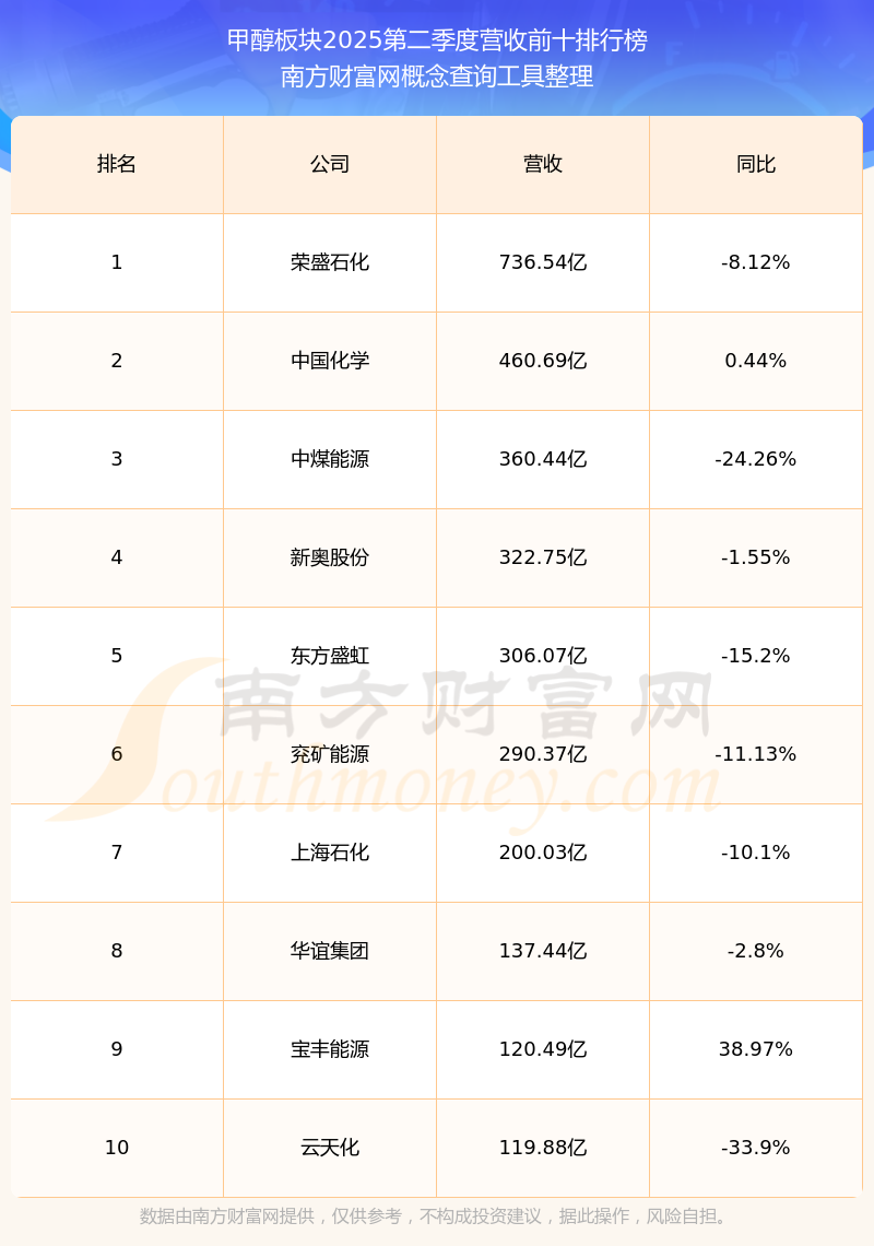 按照南方财富网概念查询工具统计,该股所属板块为甲醇板块,该板块共有54只股票,金牛化工2025第二季度营收在该板块中排名为第51名,该板块2025第二季度营收排名前十的股票如下表: