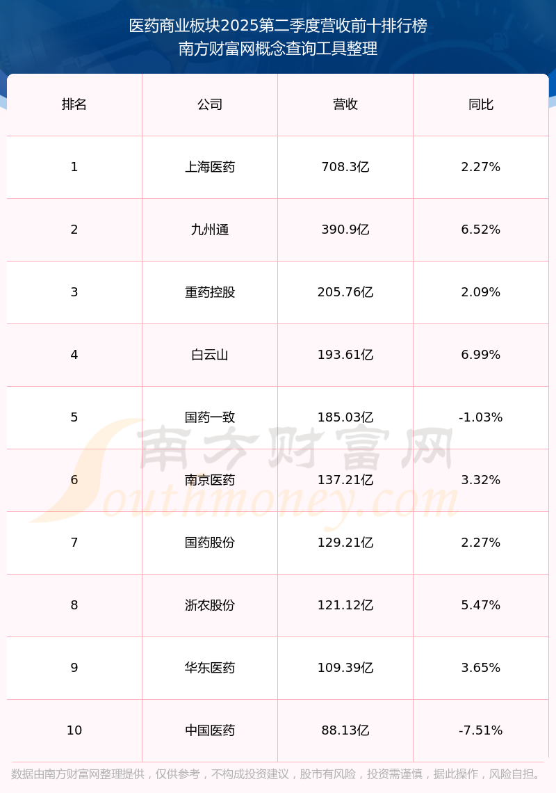 按照南方财富网概念查询工具统计,该股所属板块为医药商业板块,该板块共有61只股票,益丰药房2025第二季度营收在该板块中排名为第14名,该板块2025第二季度营收排名前十的股票如下表: