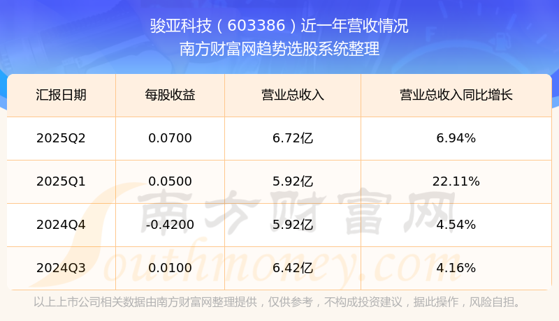 骏亚科技2025年第二季度显示,公司主营收入6.72亿元,同比6.94%;归母净利润2303.19万元,同比6262.26%;扣非净利润1169.78万元,同比226.8%。