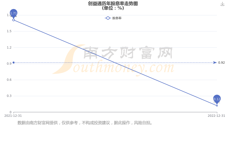 近年创益通年度股息率走势如下图: