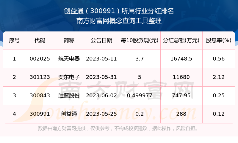 二、创益通300991行业分红排名