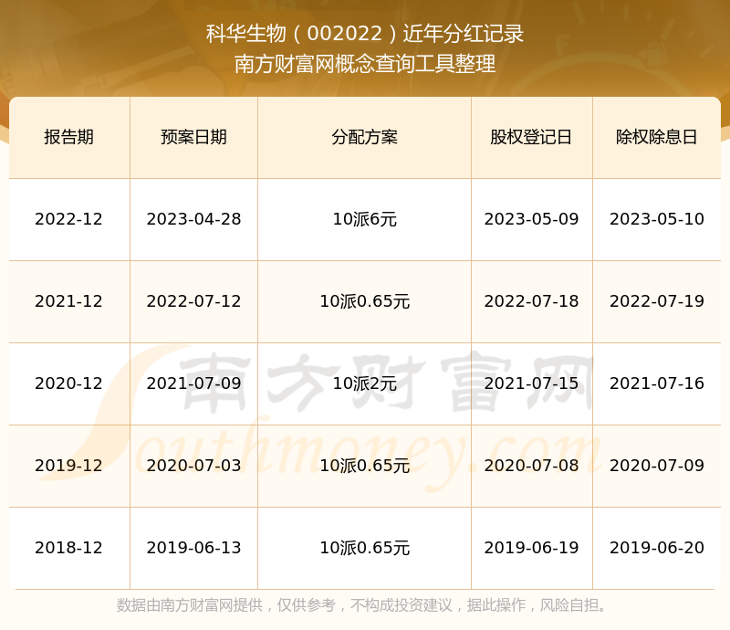 一、科华生物(002022)股票分红记录