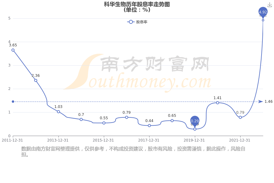 近年科华生物年度股息率走势如下图: