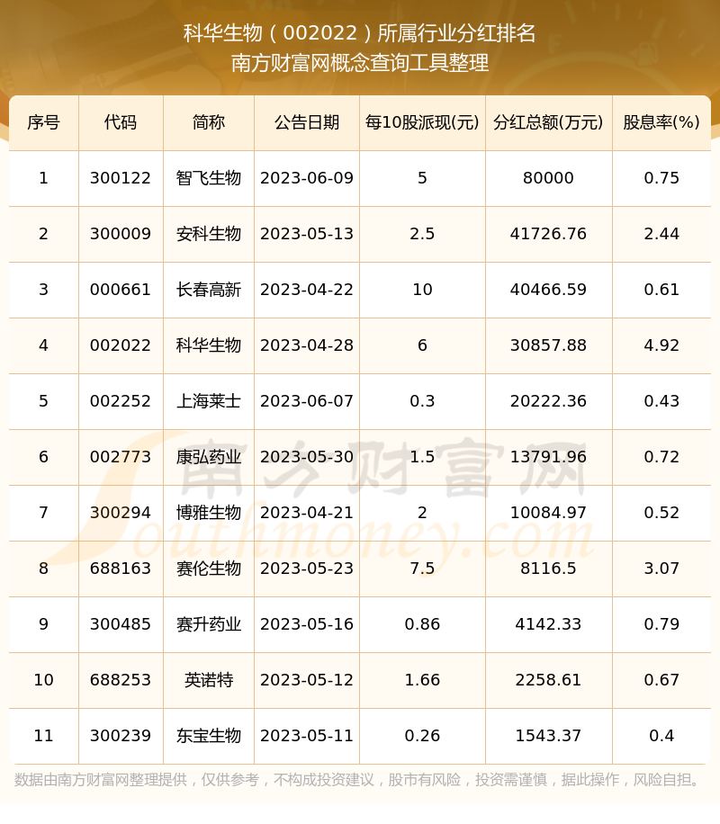 二、科华生物002022行业分红排名