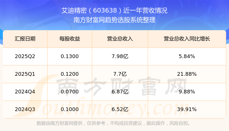 2025年第二季度,艾迪精密营收同比5.84%,净利润同比-3.04%。